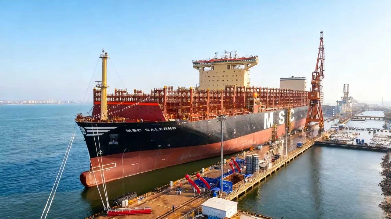 中船天津交付LNG双燃料16000TEU集装箱船“地中海萨勒诺”轮