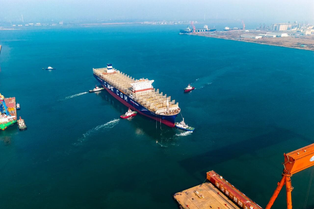 大连造船中船天津第三艘甲醇双燃料集装箱船C16K-18顺利出坞