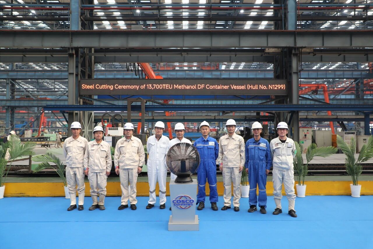近日,扬州中远海运重工为中远海运集运建造的12艘14000TEU甲醇双燃料集装箱船系列中的首制船N1299点火开工,标志着该系列新燃料船舶进入实质建造阶段,也意味着企业在新一代绿色船型布局上迈出关键一步。