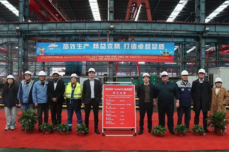 近日,三福船舶为丹麦船东马士基航运建造的4300TEU集装箱系列首制船(SF250301)在钢加车间举行开工仪式。