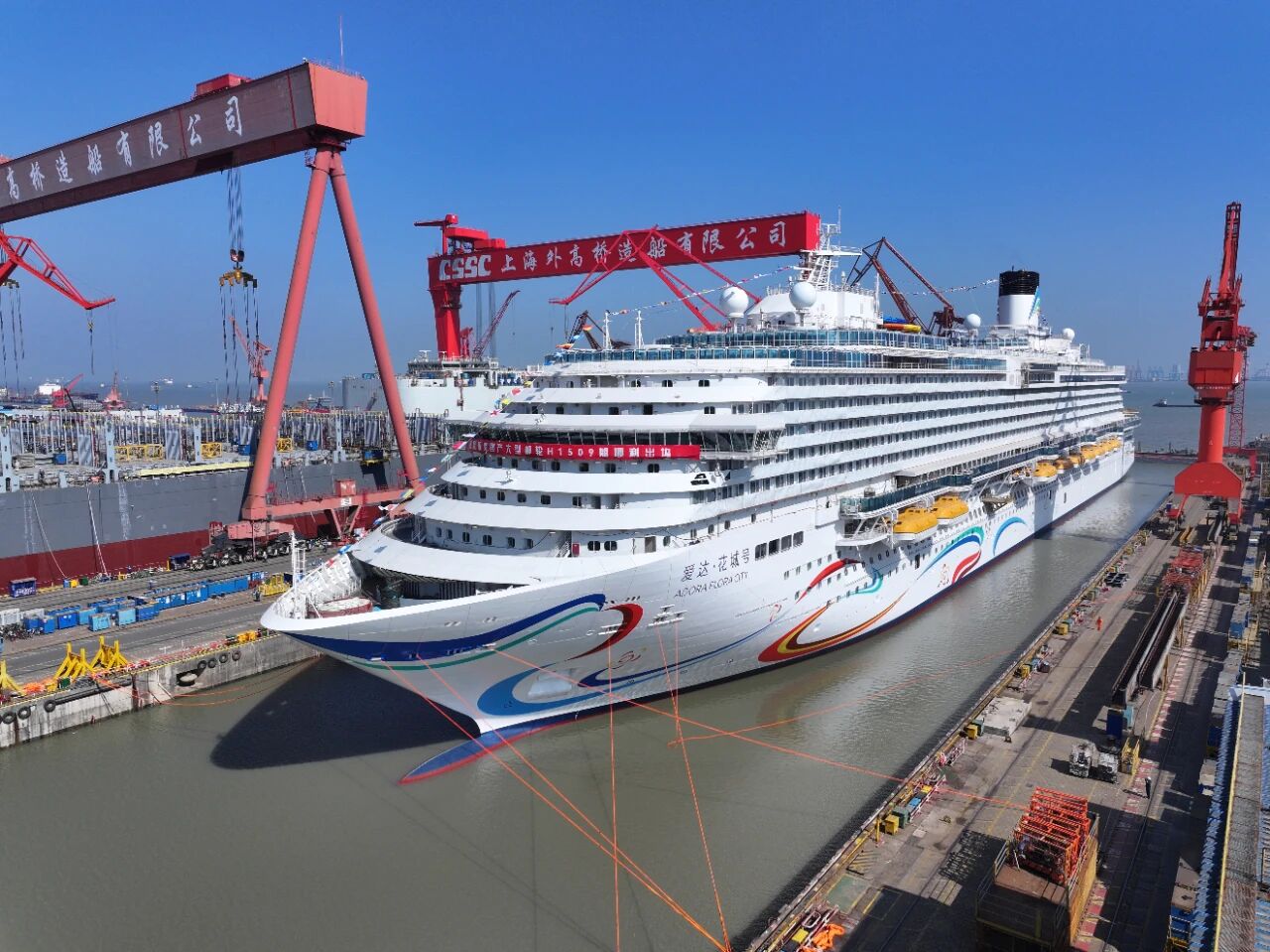3月20日,第二艘国产大型邮轮“爱达·花城号”(H1509)在中国船舶集团有限公司旗下上海外高桥造船有限公司顺利出坞,全面转入码头调试阶段,朝着年中试航、今年11月交付的目标迈进。