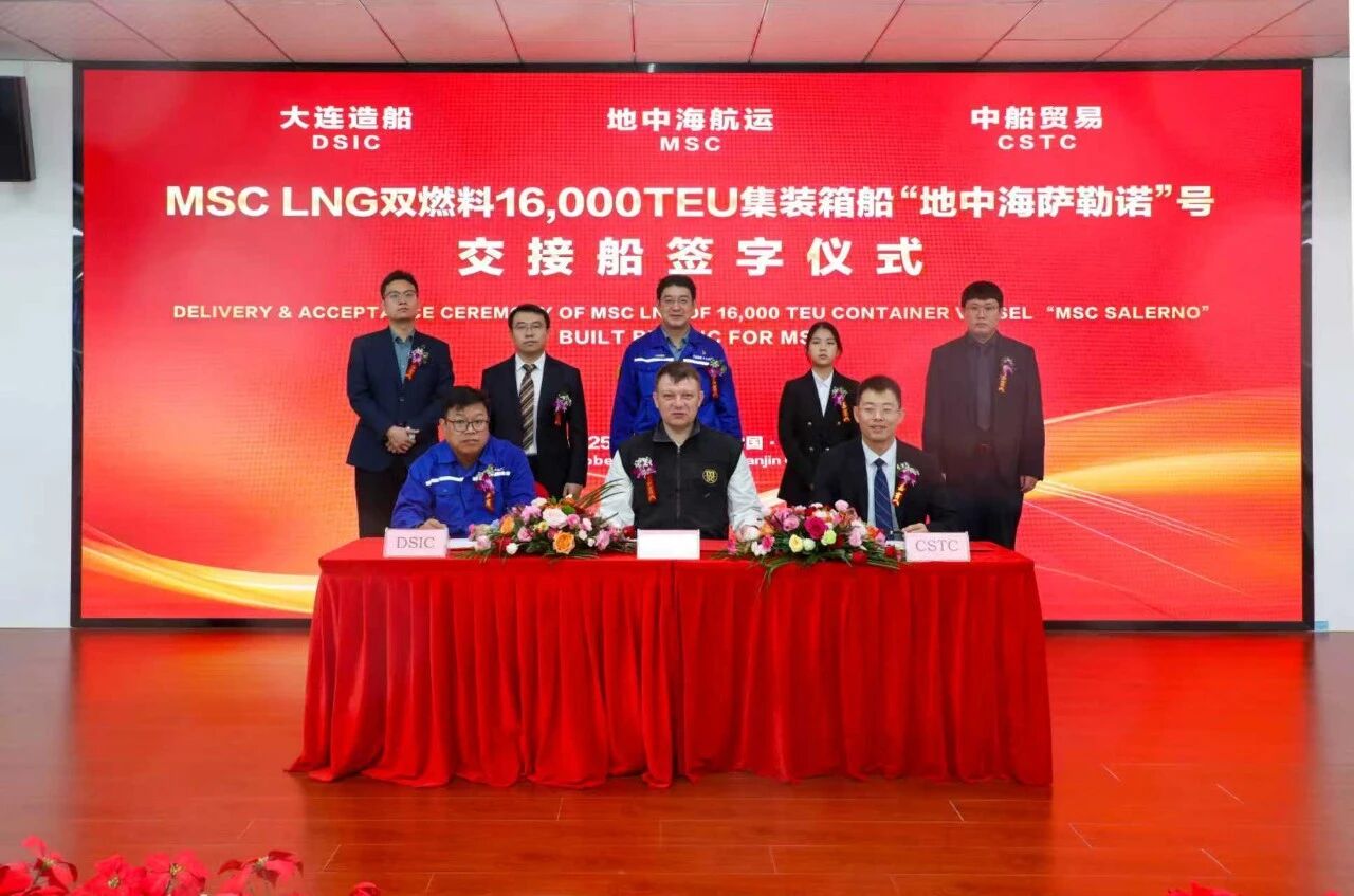 中船天津交付LNG双燃料16000TEU集装箱船“地中海萨勒诺”轮