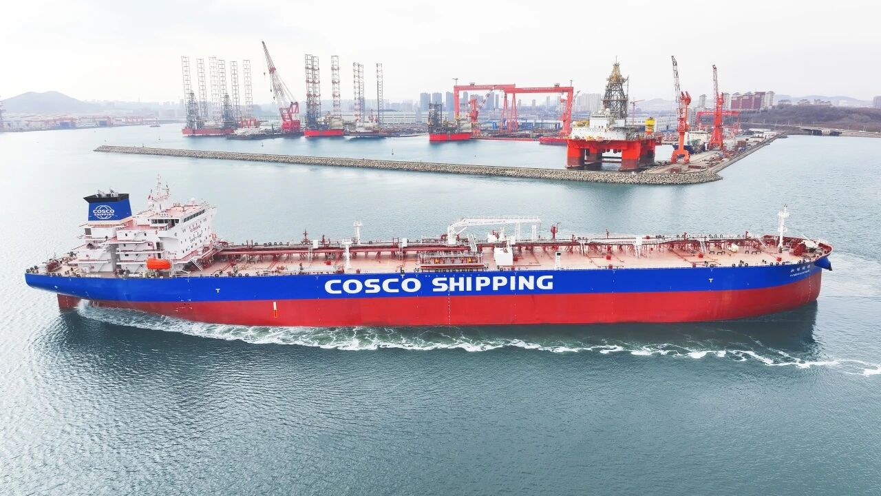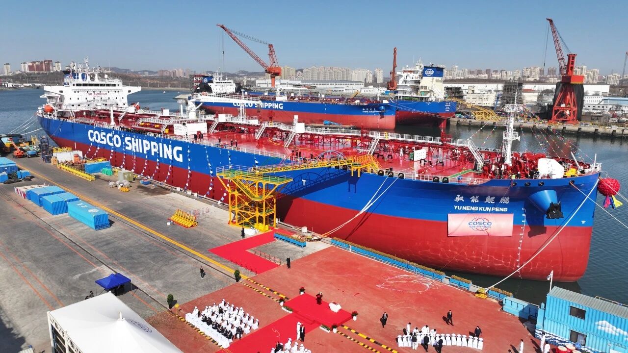 大连中远海运重工首制64900载重吨原油运输船"驭能鲲鹏“命名交付