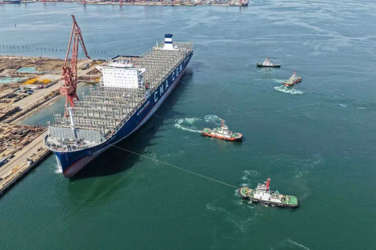4月1日,中船大连造船大船天津为达飞集团建造的甲醇双燃料集装箱船C16K-17号船圆满完成甲醇燃料试航任务,顺利停靠码头。