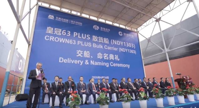 4月16日,河北交投集团所属渤海远洋公司首艘自有6.4万吨级灵便型散货船“渤海石家庄”轮(NDY1303)命名暨交付仪式在扬州新大洋造船有限公司举行。
