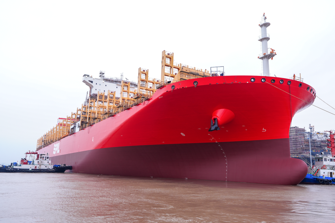 4月20日,沪东中华造船为新加坡太平船务(PIL)建造的13000TEU双燃料集装箱船H1934A在新厂区W2船坞成功出坞。